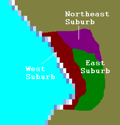 The West Suburb makes most of the money. Most points of interest are located in this district. The main city is the Crandoria Lane which leads through the entire district. The other famous landmark is the Candy Lane, also located in the West Suburb. The Golden Shopping Lane is also located near the Crandoria Lane. The city is most known for earning large amounts of bux by the companies in the city.
