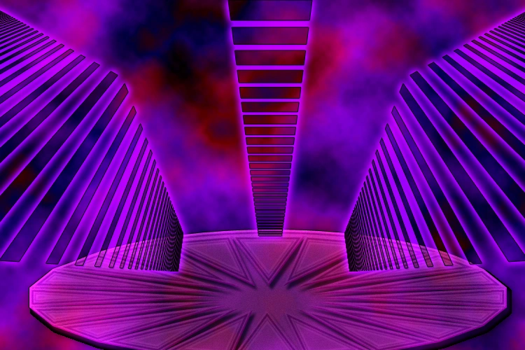 When you enter the fortress, you will start off at this floor. There are three flights of stairs here; one of them will take you to the second floor, while the other two will teleport you to a random location. The atmosphere in this floor is murky purple and a dark presence lingers in this floor. Due to the atmosphere, the stairs glow with a bright purple layer.